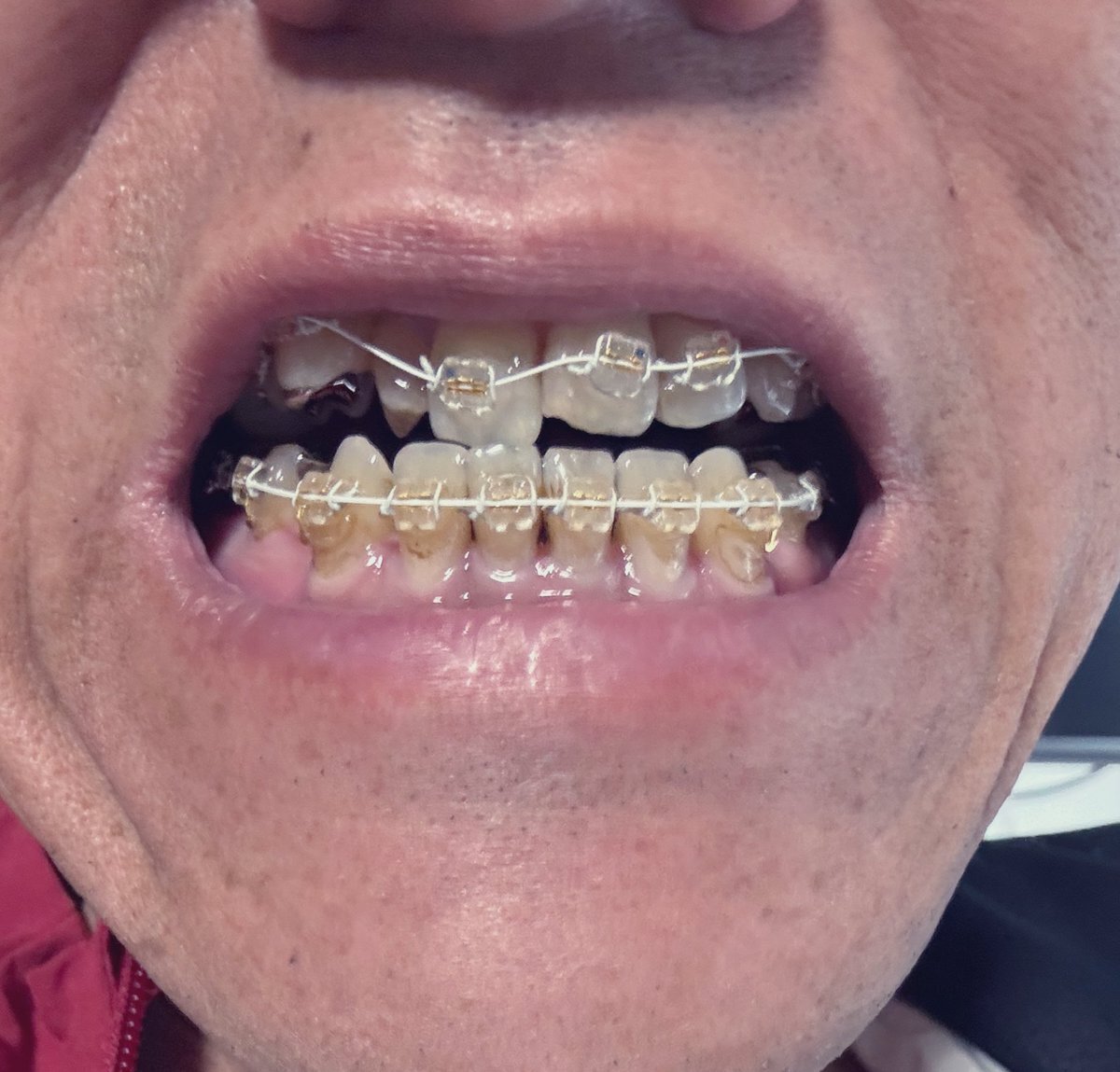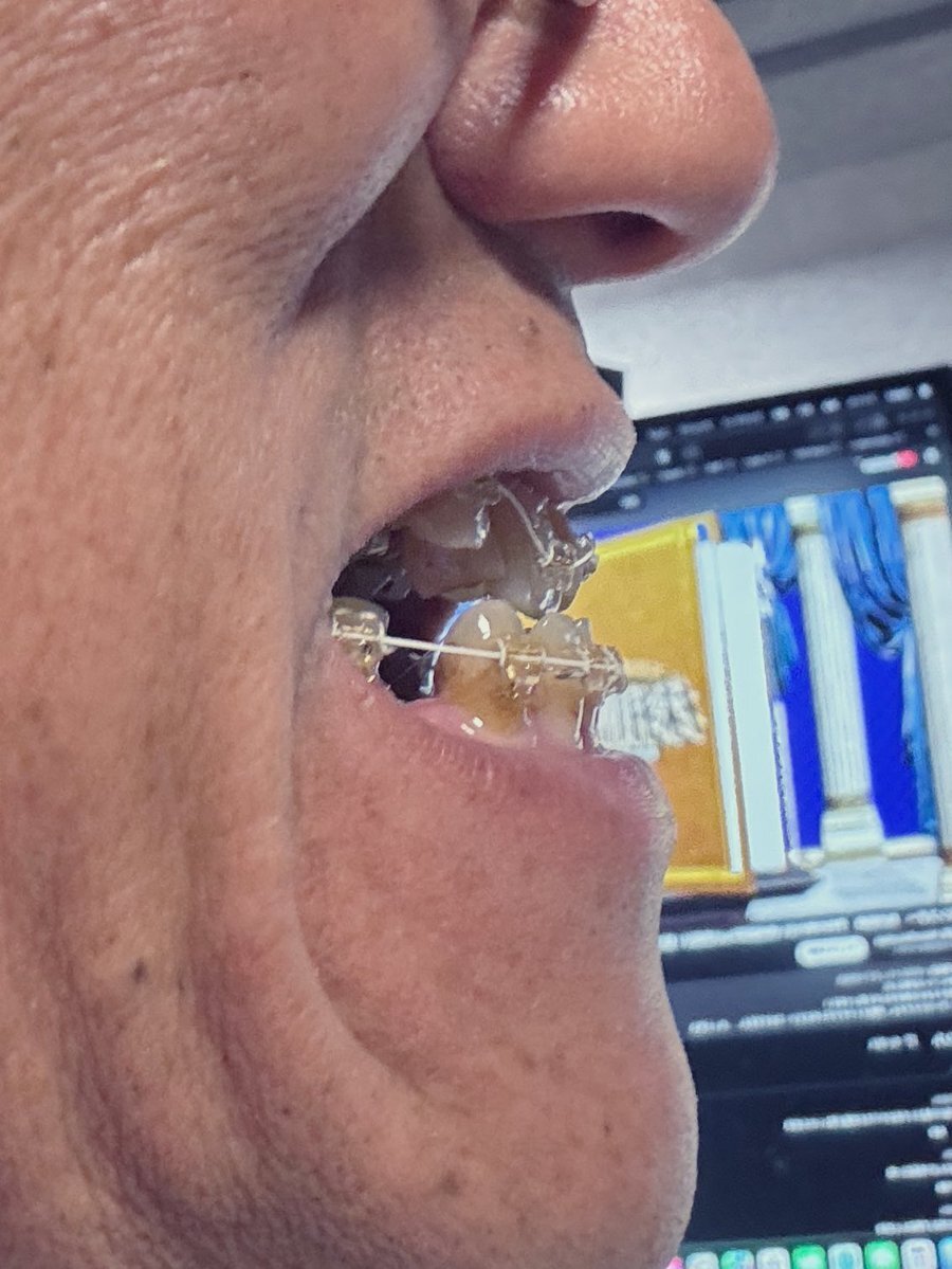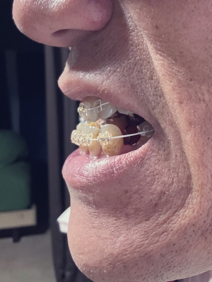 矯正10ヶ月! やっと、、 きたーーーー!! 上の歯にブラケットが付いた! しかし、奥歯に嵩増の詰め物が付いたので口が閉まらないし、噛み合わせが奥歯しか無いから食べ物が物凄く食べづらい。。 #歯科矯正 #反対咬合 #下顎前突症 #大人の矯正 #ワイヤー矯正 #カモフラージュ矯正 pic.x.com/HE773ksg9b