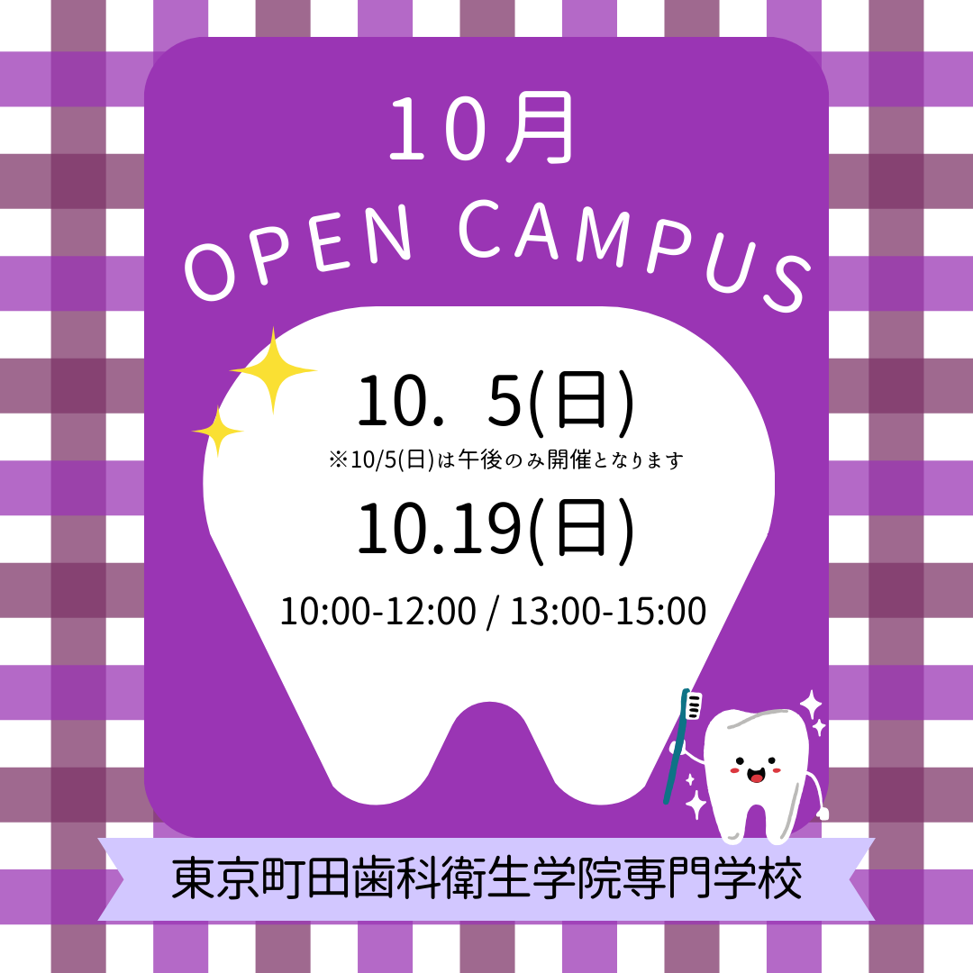 10月オープンキャンパス情報👻 皆さんのご参加お待ちしています💜 #東京町田歯科衛生学院専門学校 #歯科衛生士 #専門学校 #歯科衛生士の卵 #オープンキャンパス pic.x.com/NNgCct4pqG