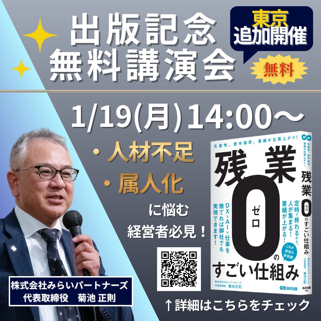 2026年1月19日、東京追加開催です。 #残業ゼロのすごい仕組み x.com/mirapa_kyuyo/s…
