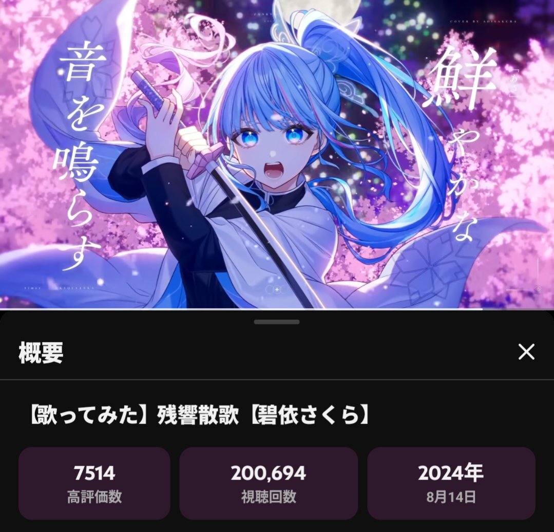 🌸歌みた 残響散歌20満開視聴突破🎊おめでと! 今まさに戦いに身を投じている時に、此の曲が 節目を通過するとは、何だか無性にアツいね🐦🔥 力ある格好良い歌声に何度目でも惹き込まれる 素敵な歌みたを有難う🌸 #碧依さくら ❄🌸🎧 #VTuber #歌ってみた #歌みた #残響散歌 youtu.be/5zA_6XeVbQ0?si… pic.x.com/CZpIgHHdqW