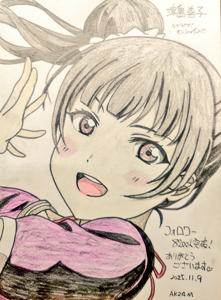 フォロワー8200人を突破しました❗️ フォローしてくださった皆様、ありがとうございました。 今回の記念絵は善子ちゃんです😊 善子じゃなくてヨハネ‼️ #毎日お絵かき #津島善子 #ラブライブサンシャイン #Aqours pic.x.com/8v9gtvG9nb