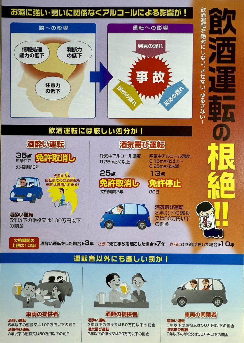 埼玉県内の公開交通取締 10月25日(土) ※警察署名 無免許 昼 小鹿野 夜 朝霞 速度超過 昼 行田 夜 秩父 交差点 昼 川口 夜 大宮西 駐車 昼 大宮東 夜 ー シートベルト 昼 ー 夜 狭山 飲酒 昼 蕨 夜 児玉 天候等により内容は変更されます 他にも非公開交通取締があります #毎日交通事故防止運動 pic.x.com/X4TiFSvVLc