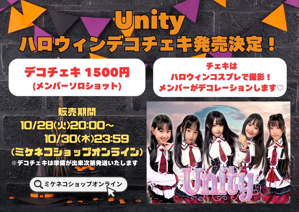 🎃ハロウィンデコチェキ販売🎃 [10月28日20時から✨] Unity初のグッズ販売するよ🩷ྀི 可愛い衣装でハロウィンぽく♡ デコも可愛くするから、みんな〜 是非買ってね♫꒰・‿・๑꒱ 購入サイトは⬇️からチェック✅ #デコチェキ #ハロウィン #毎日Unity pic.x.com/SmfajCUGvv x.com/unity_kousiki/…