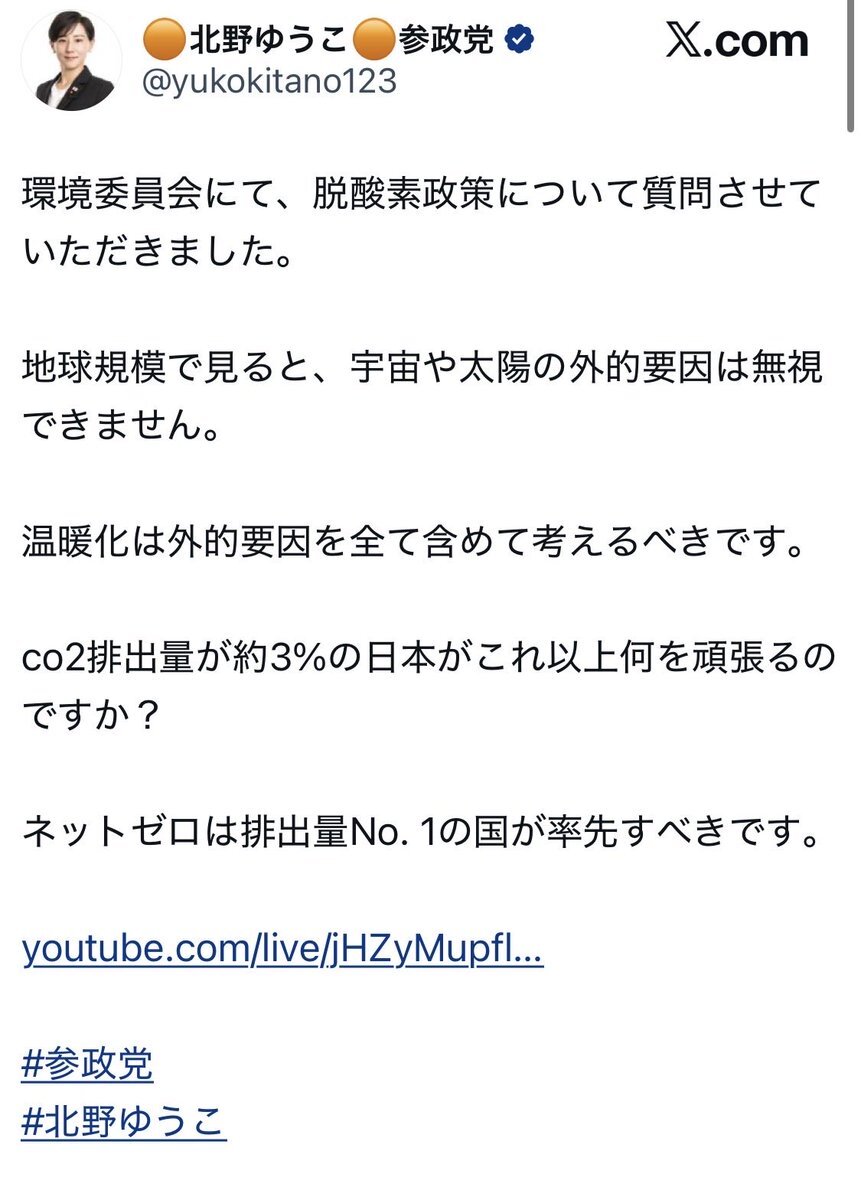 党丸ごと、小学生以下だな。 こいつら支持してる人間の知性が疑われる。 うんにゃ、知性がないから、支持できるとも言える。 世界が抱えてる1番重要な課題すら、理解してないなんて、コントだよな。 #参政党 #気候変動 x.com/nene787147251/…