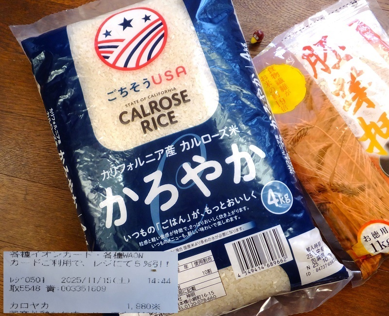 イオン系マックスバリュでキャルローズ get!🤡 1kg500円だから、新米の半額だにゃ。 ただインディカが少し入ってるんのか、パラついてる様だ、1時間水に浸した方がいいみたい。 1kg250円のギョウスー胚芽押麦で増量、健康にも良い。 #カルローズ米 #米不足 #ボンビー #気候変動 pic.x.com/boojM65PBJ x.com/popobrasil/sta…