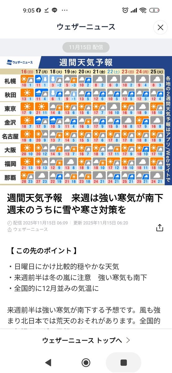 いずれにせよ 日本でも来週から 11月としては異例の強力な寒波が襲来する 今週の穏やかな天候とは状況が一変し 低気圧が発生すれば 爆弾低気圧となる可能性があるが 各地で最高気温が一桁となる 1〜2月の真冬よりも厳しい環境となる為 全てにおいて 『最低でも真冬の備えが必要』になる #気候変動 pic.x.com/5mvTIQ21W5