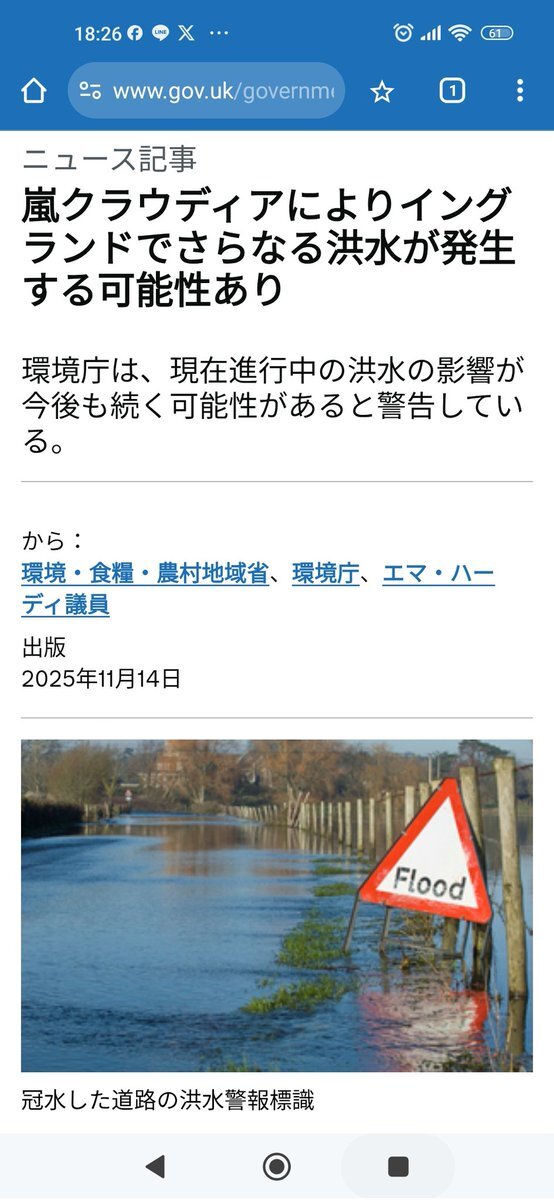 発達した低気圧の影響により 英国気象庁は引き続き イングランドで83件 ウェールズで12件の洪水警報を発令中 来週は日本と同様 急速に強力な寒波に見舞われる為 英保健安全保障庁(UKHSA)は 氷点下の気温や降雪に備え 広範囲に寒波警報を発令するなど より激化した悪天候に対応している #気候変動 pic.x.com/Fa1XiZNbbv