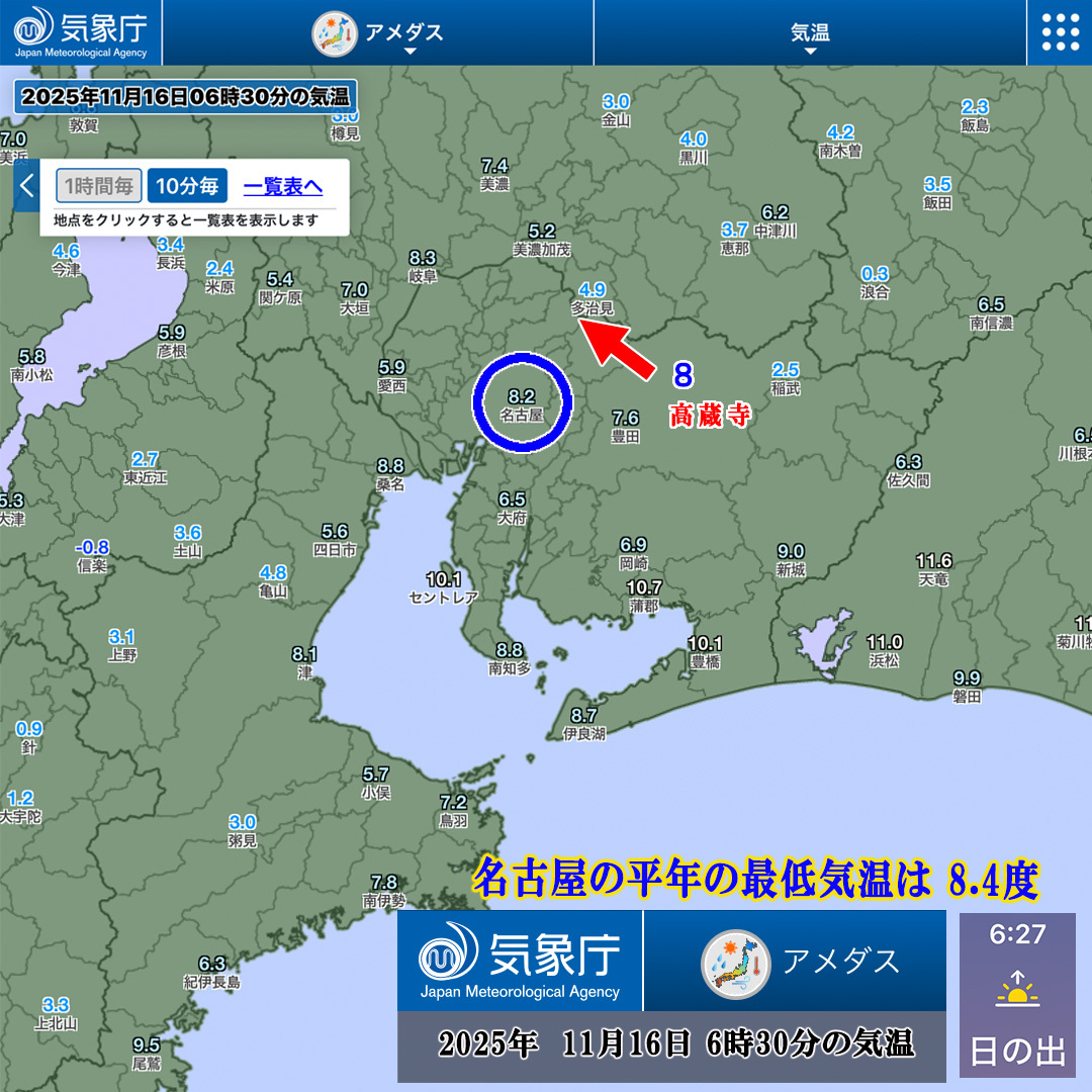 2025年16日 名古屋 日の出:6時27分 最低気温:8.4度 最高気温:17.0度 6時30分 点検時8度 平年並み 基準気温 平均気温12.4度 #SDGs #子供たちの未来のために #CO2削減 #気候変動 #マイクロプラスチック削減 #点検空気圧の事実と真実 #食糧危機 pic.x.com/zhxpkfbFhh