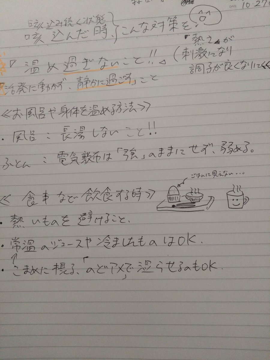 喘息の吸入薬を受け取る際に、 薬剤師さんから 「咳に対するアドバイス👍」 こちら。 熱さ🥵が刺激になりやすいのね。 あまり温泉にも行ったことなくて、 数分温まって出るタイプ 飲食についても 「熱過ぎない温度」なのね。 x.com/haruame25/stat…