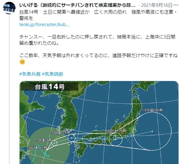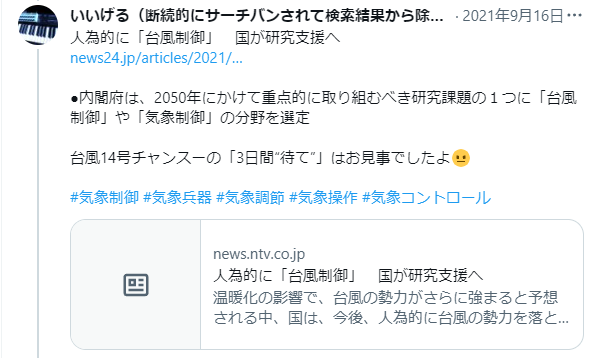 未来予測反省会『台風の進路は変えられる』 ↑ 本編は見なかったけど、予告が流れたときめっちゃびっくりした。「へっ!?この内容放送できるようになったん?😳」って。 総務省が相当頑張ってるってことかな? #気象操作 #気象兵器 #HAARP x.com/KageyamaStaff/…