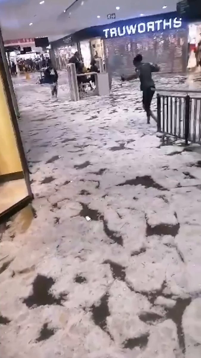 Flooding hit Golden Walk Mall in Germiston, South Africa, after a massive hailstorm earlier today 👀