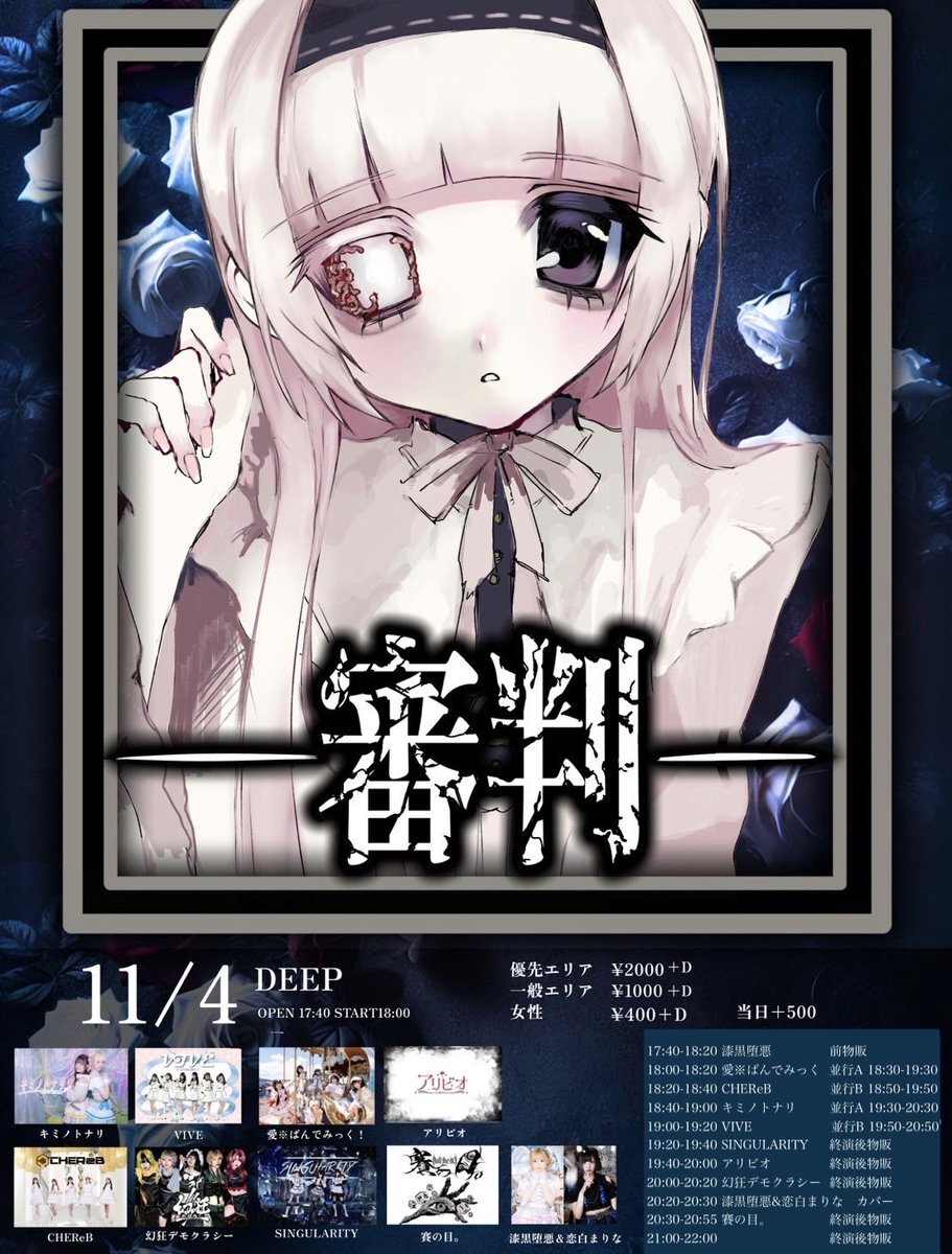 ▩▩▩▩▩▩▩▩▩▩▩▩▩ DEEP 2025.11.4.Thu. ▩▩▩▩▩▩▩▩▩▩▩▩▩ 審判 at.#DEEP 🎫 優先エリア¥2,000円+D 一般エリア¥1,000円+D 女性¥400円+D 当日+¥500円 tiget.net/events/437570 ⏳️