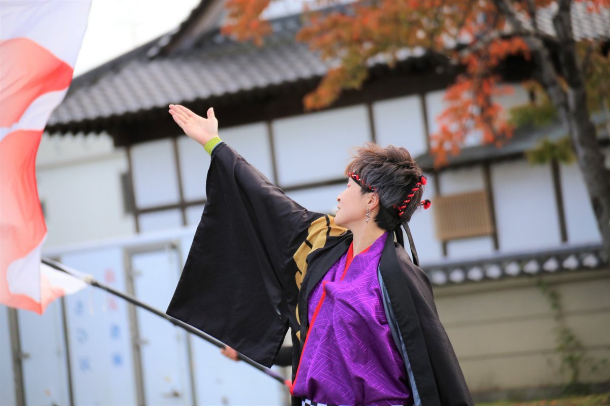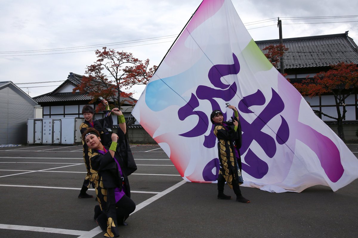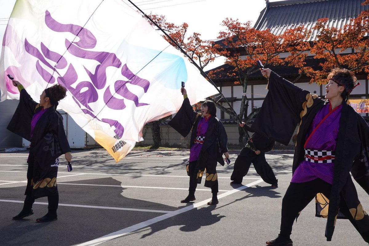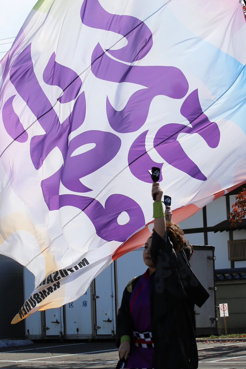 2025.11.2 YOSAKOI祭りin加美にて #水沢絆舞連 さん @mizusawahanbren #YOSAKOI祭りin加美 風向きに合わせながら上手く旗振りされるなあと思います✨ pic.x.com/USbwriRT7f