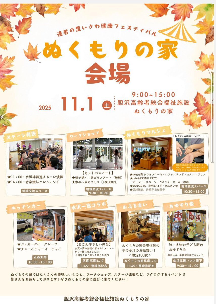 【演舞予告】 11月1日(土) 場所:ぬくもりの家 時間:11:00~11:30 今年も 演舞依頼いただきました🙏 入所者さん 職員さん 家族の方々 会場にいる全員に非日常的な声量と元気になれるパワーおくります💪 ヨロシクおねがいします #水沢絆舞連 pic.x.com/GeTlhwMT1c