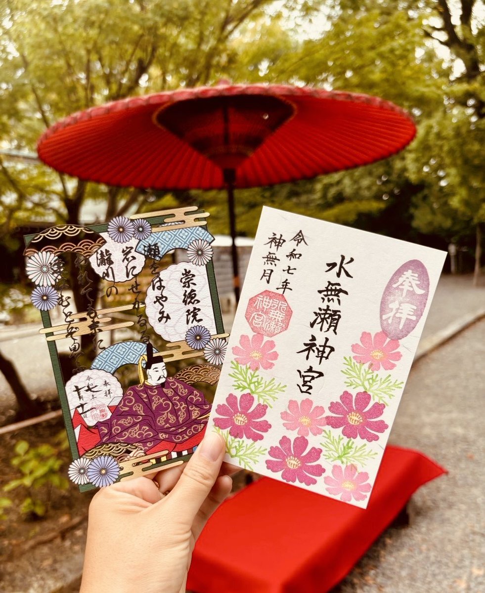 水無瀬神宮さんで、 今月(10月)の月替わり百人一首御朱印頂いてきました! 近江勧学館の崇徳院さんのグッズも並べてみました! 8月の後鳥羽院さんと9月の紫式部さんも もちろんゲット済 来月も楽しみ #水無瀬神宮 #御朱印 #百人一首 #崇徳院 #後鳥羽院 #紫式部 #近江勧学館 pic.x.com/5X86OOJODj