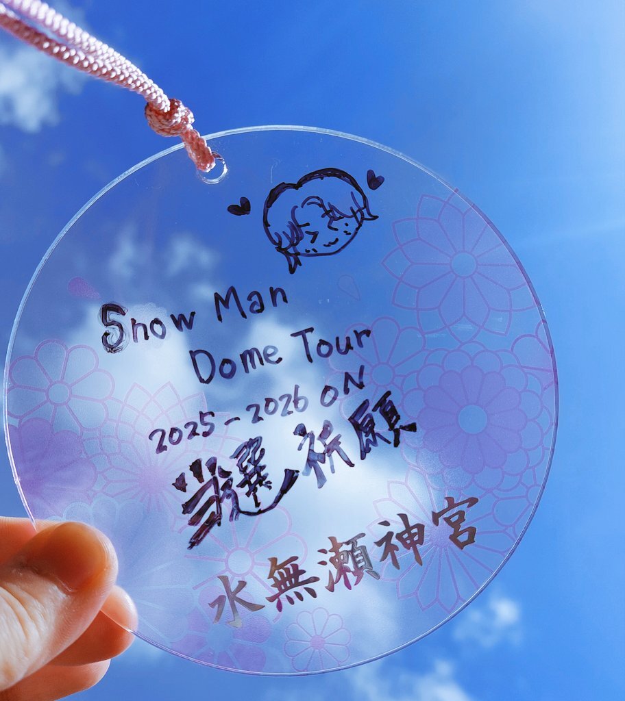 今日はSnowManのLIVEの当選祈願に大阪府で唯一の神宮、水無瀬神宮に行ってきたよ⛄️✨ お目当ては叶絵馬守🖤 少し前まで絵馬しかなかったのを、持ち帰りたいとの声にお守りをセットにしてくれて絵馬は神宮にお守りは持って帰れるようにしてくれたんやって😌 どの色も綺麗でした✨ #水無瀬神宮 #叶絵馬守 pic.x.com/lXxdUpLtjT