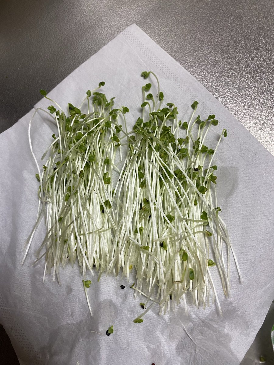 さっき梅田から帰宅しました🏘️『かいわれ大根』5日目の夜〜🌱🌱🌱🌱🌱窓際に『黄色いかいわれ』を置いて💛どれくらい『緑化』が進むか試してみました✨結果はご覧の通りです💚この後『アルミホイル遮光』して再び成長を促します⤴️⤴️⤴️ #せーら園芸 #水耕栽培 #バジル栽培 #青シソ栽培 x.com/sarah_7535/sta…