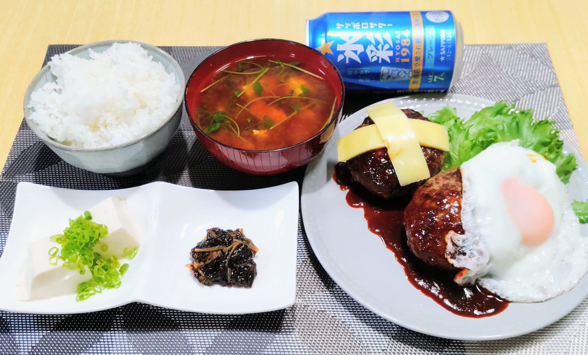 夜ごはん🧑🍳 ダブルハンバーグ定食🐃 チーズと目玉焼きで美味しいよ🍳 そして今日も彩🤍あや美味しい🤍 んじゃ来週から忙しくなるので今のうちにゆっくり休みます🙂↕️ #おうちごはん #ハンバーグ #氷彩 pic.x.com/alvqRk4kl7