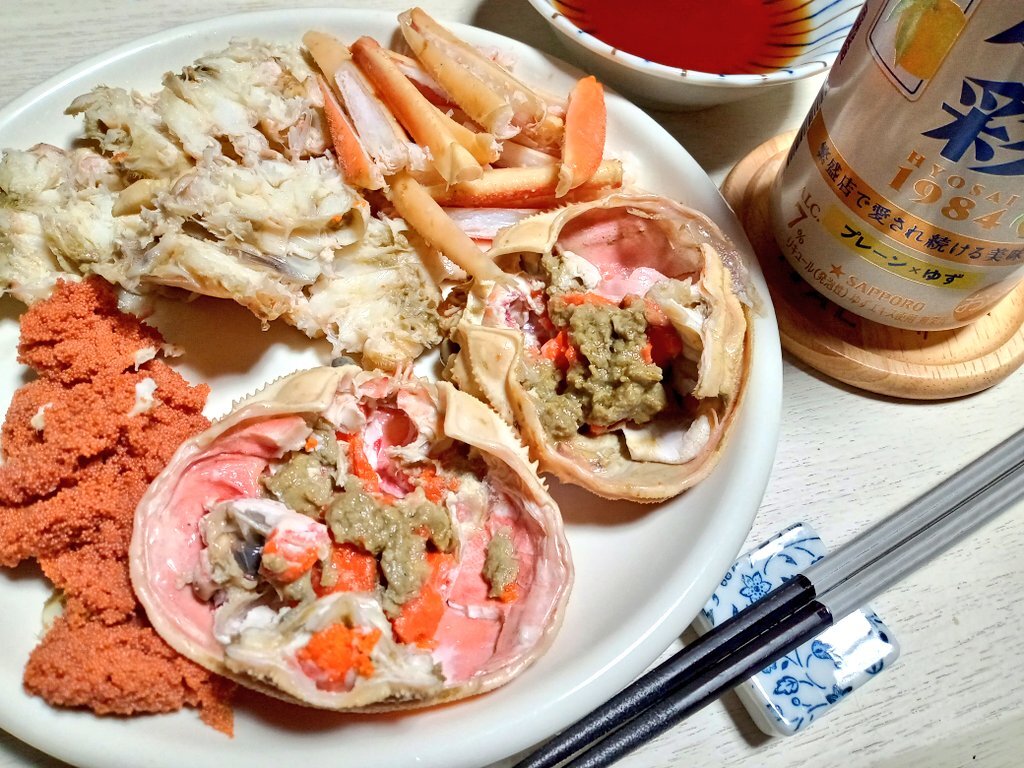 #香箱蟹 解禁!✨️🦀✨️ 内子と蟹味噌と蟹身を三杯酢でまじぇまじぇして食べたら飛ぶに決まっとる(3枚目の見た目悪いヤツw) ゆずコラボの #氷彩 で #晩酌 #夜を始めることにします 1週間休みナシ勤務期間中。 呑み過ぎぬ様、注意やw pic.x.com/mLuao3ZEui