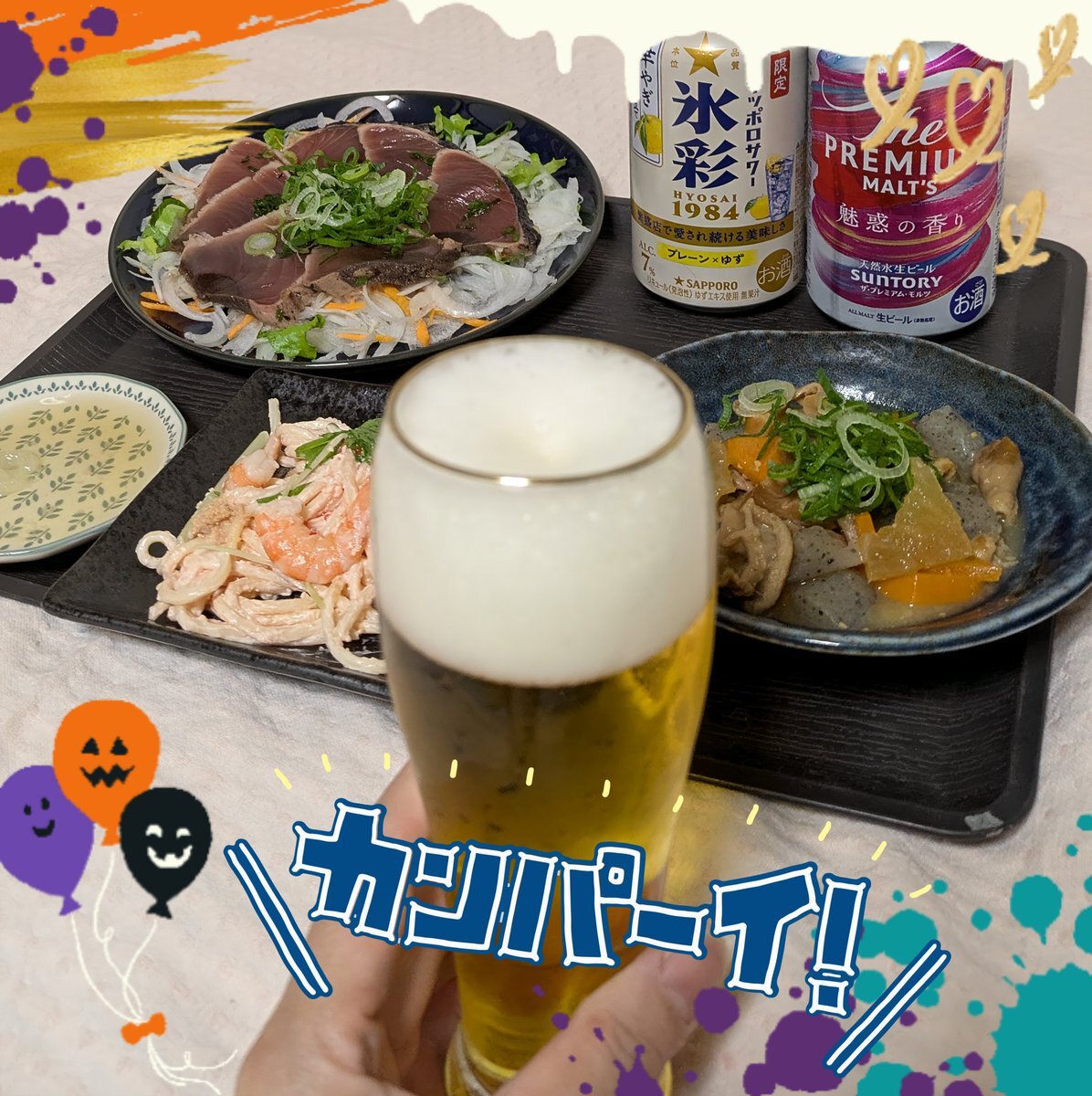 明日も仕事だけど、ハロウィンだから はしゃいじゃおーぜ♪(((ᕙ( ◜︎࿀◝︎ )ᕗ)))" ハッピーハロウィン🎃🦇🕸 #お酒好きな人とつながりたい #おうち飲み #おうち居酒屋 #とにかく呑み隊 #お酒好き主婦 #本麒麟 #GOODALE #氷彩 #Twitter晩酌部X晩酌部 pic.x.com/RKO7gUm87Q
