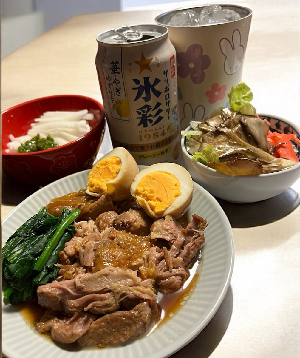 夜ごはんは豚しゃぶ🐖 手作りもずくの佃煮とかもあるよ🧑🍳 しゃぶしゃぶは鰹の効いたタレにシークワーサー絞って美味しいよ🍊🐟でも宮古島で食べたあぐー豚のほうが美味しいなぁ🐖 んで今日も彩🤍彩すきー🤍 #おうちごはん #氷彩 pic.x.com/n7CRc0GJXa