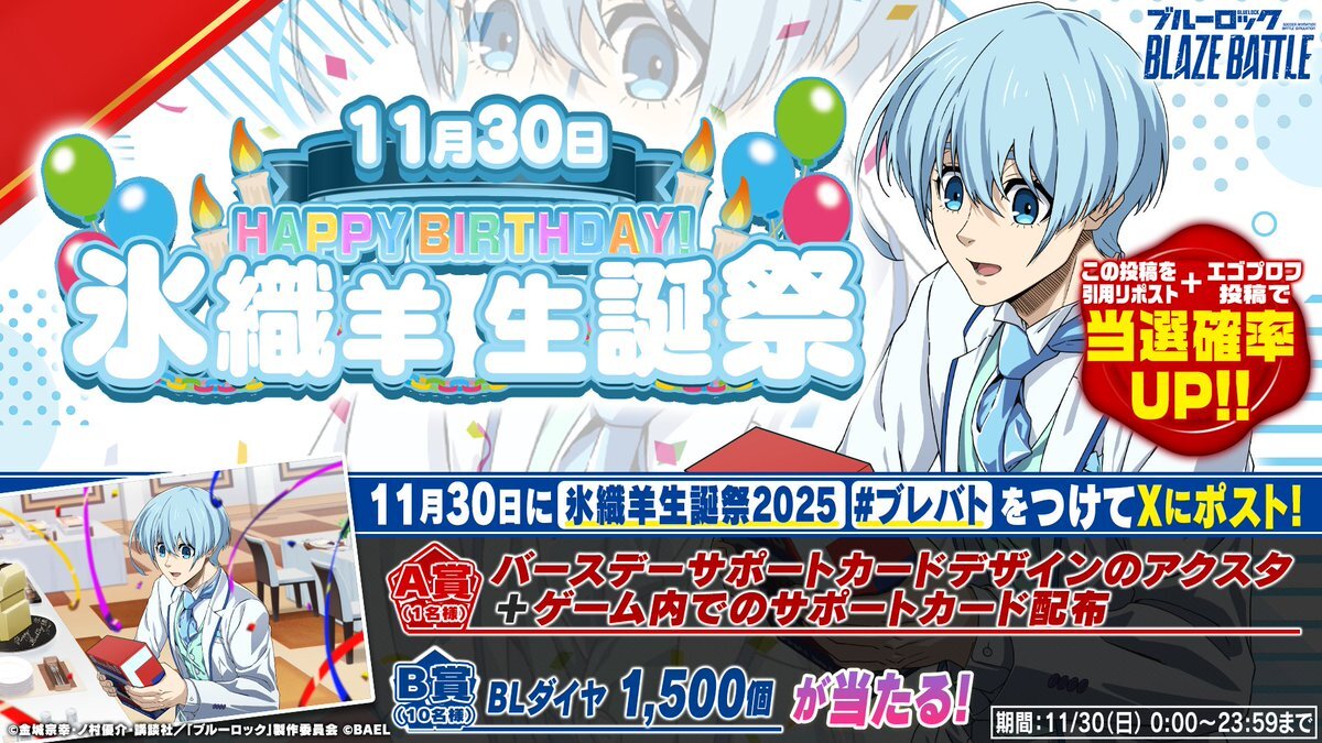 11傑には欠かせないキーパーソン氷織おめ!! #氷織羊生誕祭 #ブレバト x.com/bluelock_blaze…