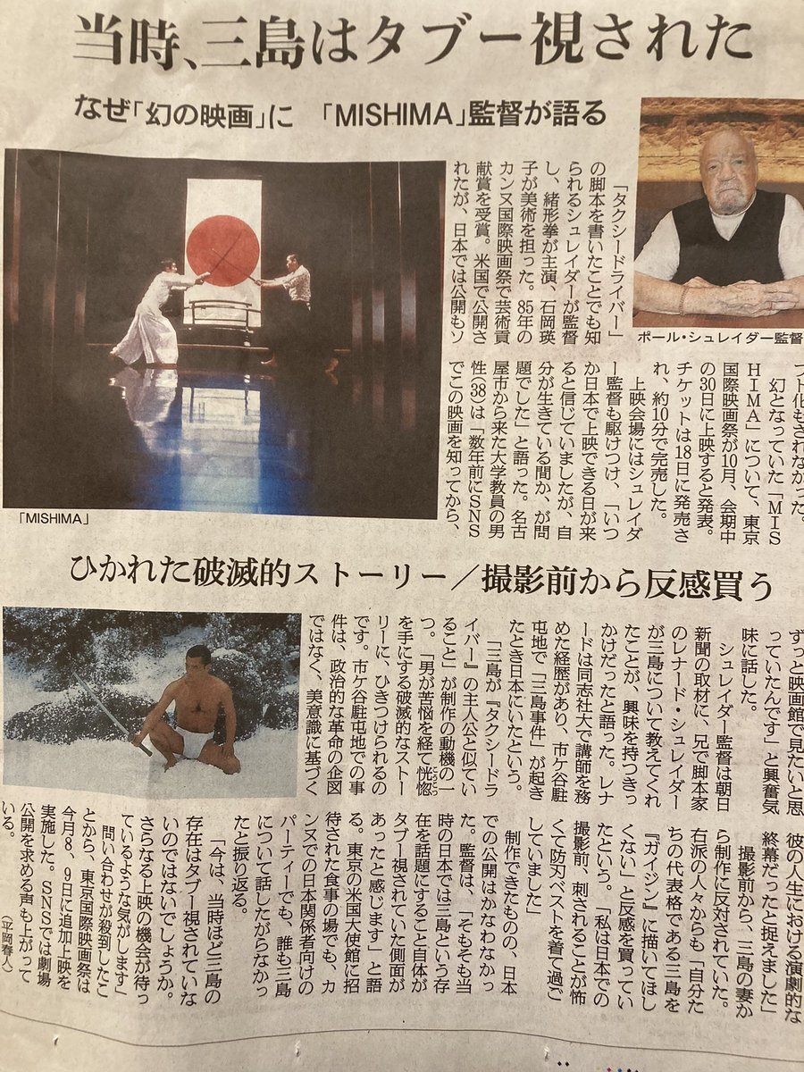 なるほど🧐当時は三島の存在がタブー視されていたのですね🤔市ヶ谷駐屯地は我が家から徒歩圏内🚶40年経た今だからこそ価値があると考えます。是非劇場での一般公開を…❣️ #MISHIMA #ポール・シュレイダー #緒形拳 #永島敏行 #沢田研二 pic.x.com/MyYO9GzghI
