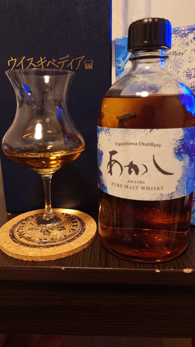 あかしピュアモルトウィスキー!はちみつやみかん、クッキーの香り!味わいはフルーティで、余韻にチョコレート!あかしはどれも美味し!#あかし #あかしピュアモルト #咲グラス #江井ヶ嶋酒造 pic.x.com/Mck4r7ZTt5