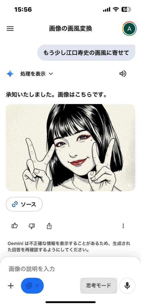 #gemini3 で明示的に 🍌をしていなかったので、#NanobananaPro が選択されなかったかも?と思い、やり直し。引用の4枚目と比べるとメイクの影響を正しく受けてる?🤔#江口寿史 風に、ダイレクトにお願いしたら、スクリーントーンを貼ってる画風に🤣…🍌わかってるなぁ‼️さすがです👍👍👍 pic.x.com/oDNiqfxZJS x.com/agile_dqx/stat…