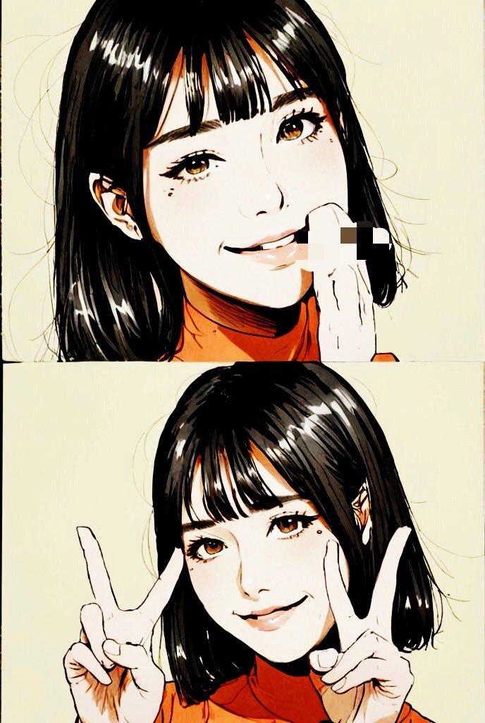 #江口寿史 の #トレパク 云々を見て氏の作品からスタイル抽出して人の実写から彼っぽく再現できるか試してみた結果(フィルターで色のバランスは調整してあります)いい線行ってるようなそうでも無いような?🤔