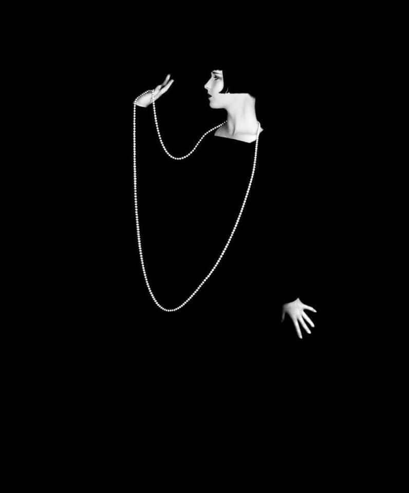 モノクロの極み、ですね。画像は米のダンサー兼女優ルイーズ・ブルックス(1928撮影)。撮影者はユージン・ロバート・リッチー(リシーとも)です。 特徴的なブラウンの目に鋭角的な鼻のライン、そして黒髪のボブカット。撮影者リッチーは女優ブルックスの魅力をこの写真で100%引き出しました。