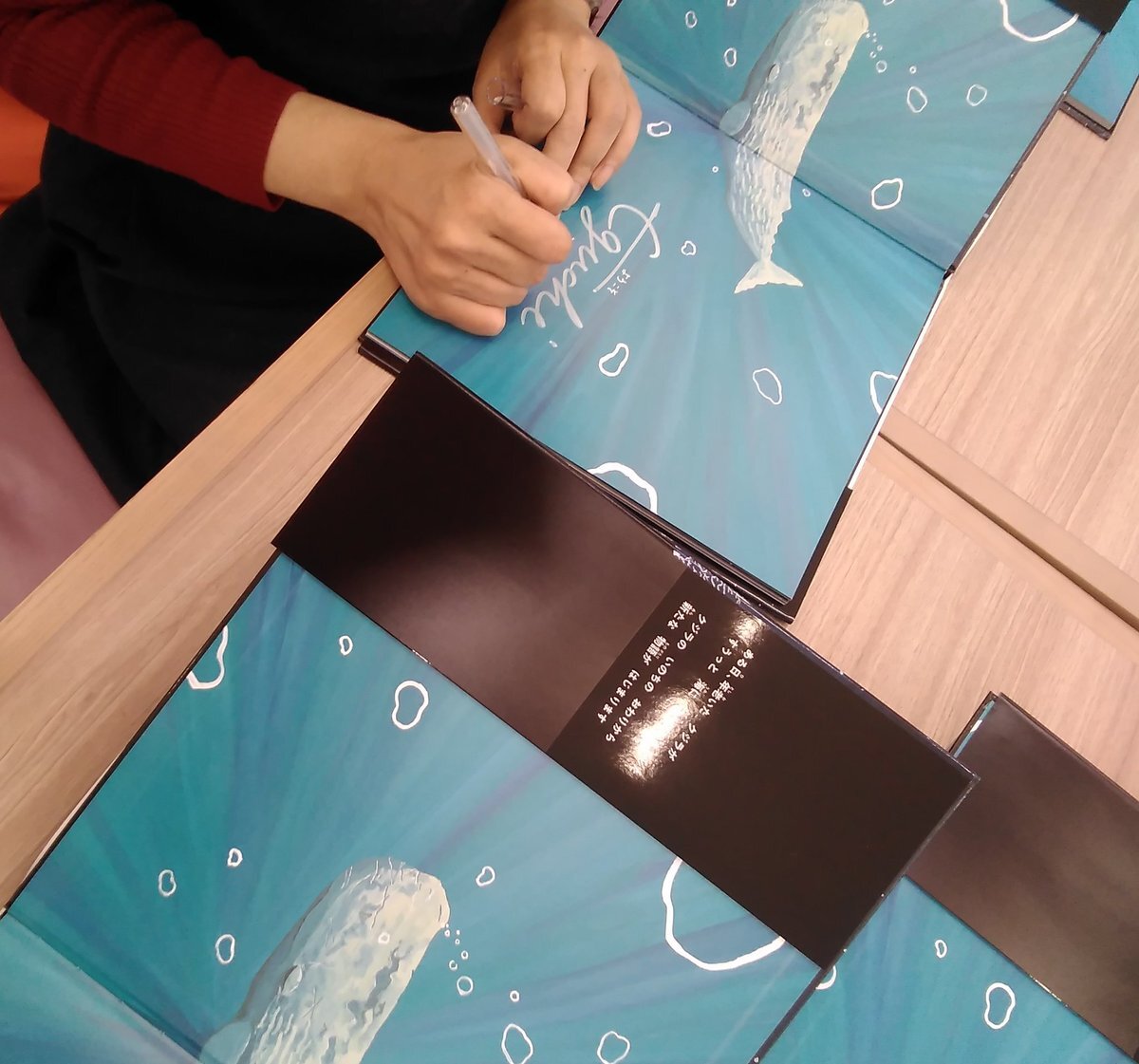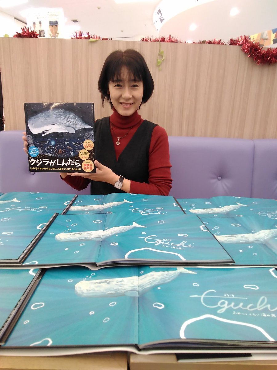 #クジラがしんだら』の著者 #江口絵里 さんにご来店いただきました🥰 クジラの骨に集まる深海生物たちのドラマが話題の絵本です。 サイン本を作っていただきました! 素敵なサイン本、ぜひお早めにお求め下さい! (※店頭販売のみ) #童心社 #ようちえん絵本大賞 #講談社絵本賞 #深海生物 pic.x.com/qWqqZ5ZbeR