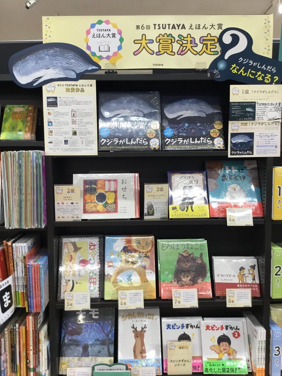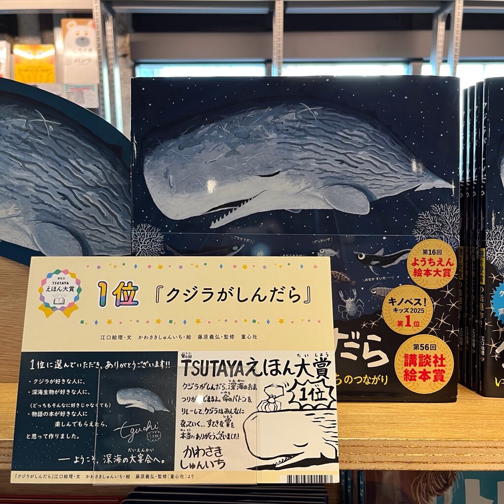 \🎊第6回TSUTAYAえほん大賞受賞作品発表🎊/ ✨1位『 #クジラがしんだら』✨  絵 #かわさきしゅんいち さん 文 #江口絵里 さん 当店では、入口すぐの児童書コーナーにてTSUTAYAえほん大賞フェアを開催中です❗️ 受賞されたみなさま、おめでとうございます🎉🎉🎉 pic.x.com/lSHNXH1vLM