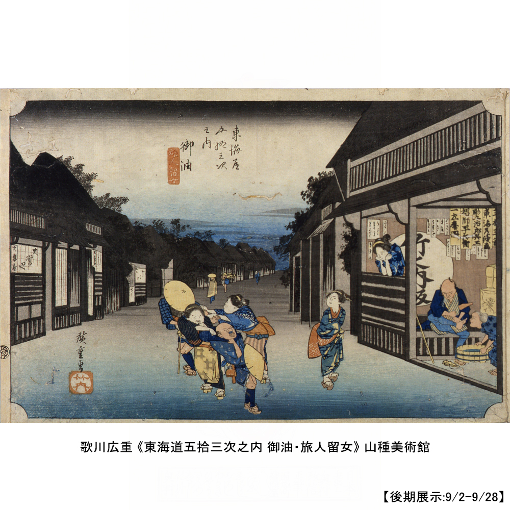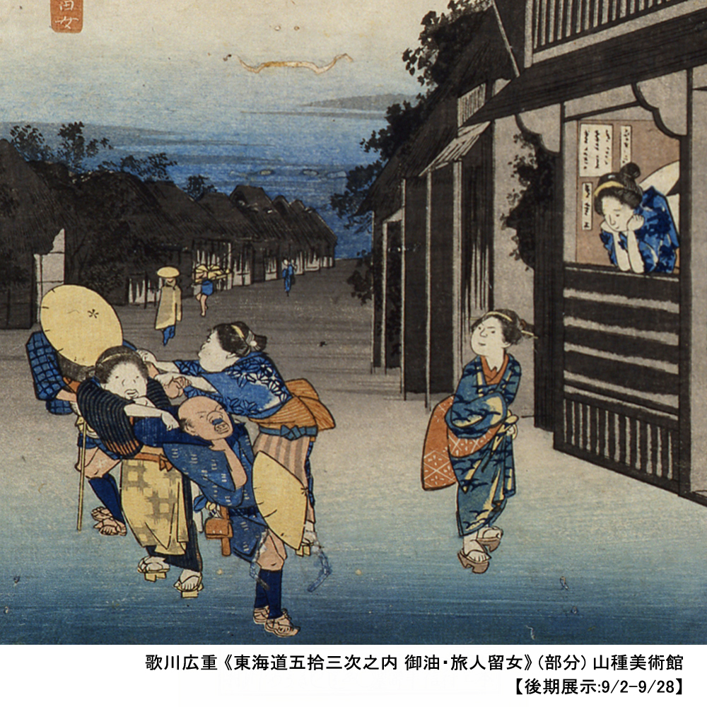 #江戸の人気絵師展 にて展示中!/ #歌川広重 《東海道五拾三次之内御油 旅人登留女》(#山種美術館 ) 宿屋の女性にぐいぐい引き止められる旅人💥  何ともコミカルな光景です。 隣町との客引き合戦で知られた御油(ごゆ)。 苦しげな旅人とは裏腹に、周囲は和やか😌 当時の日常が感じられます。 pic.x.com/MQ1Yskt8sJ