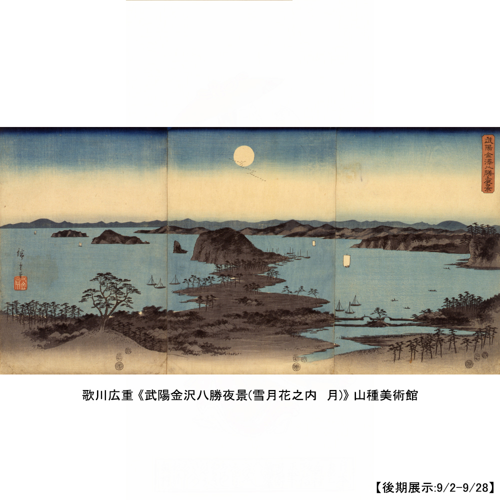 #江戸の人気絵師展 にて展示中!/ #歌川広重 《武陽金沢八勝夜景(雪月花の内 月)》(#山種美術館 ) 静かな海を照らす月🌙 金沢八景、今の横浜市金沢にあたる名所です。 広重は現地でスケッチを行い、本作のもとにしたとされます。 闇に沈む陸地と明るく澄んだ水面、その対比が心に染み入ります✨ pic.x.com/m7SwADXyzc