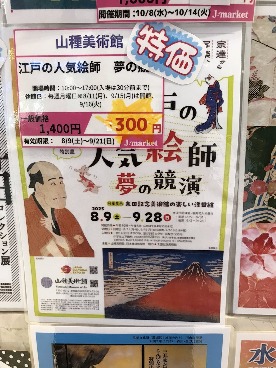 ✨ポルタ店✨ 明日9/21期限の #お得情報 ‼️ #山種美術館 #江戸の人気絵師展 のチケットが1枚限りの入荷致しました☺︎ 一般定価1400円⇒『300円』にて販売中です( ^ω^ ) 赤字覚悟の大特価❣️ 期限付きの券ですのでご注意下さい! 皆様のご来店お待ちしております♪ 📞045-453-1711 pic.x.com/1oALsQRKoD