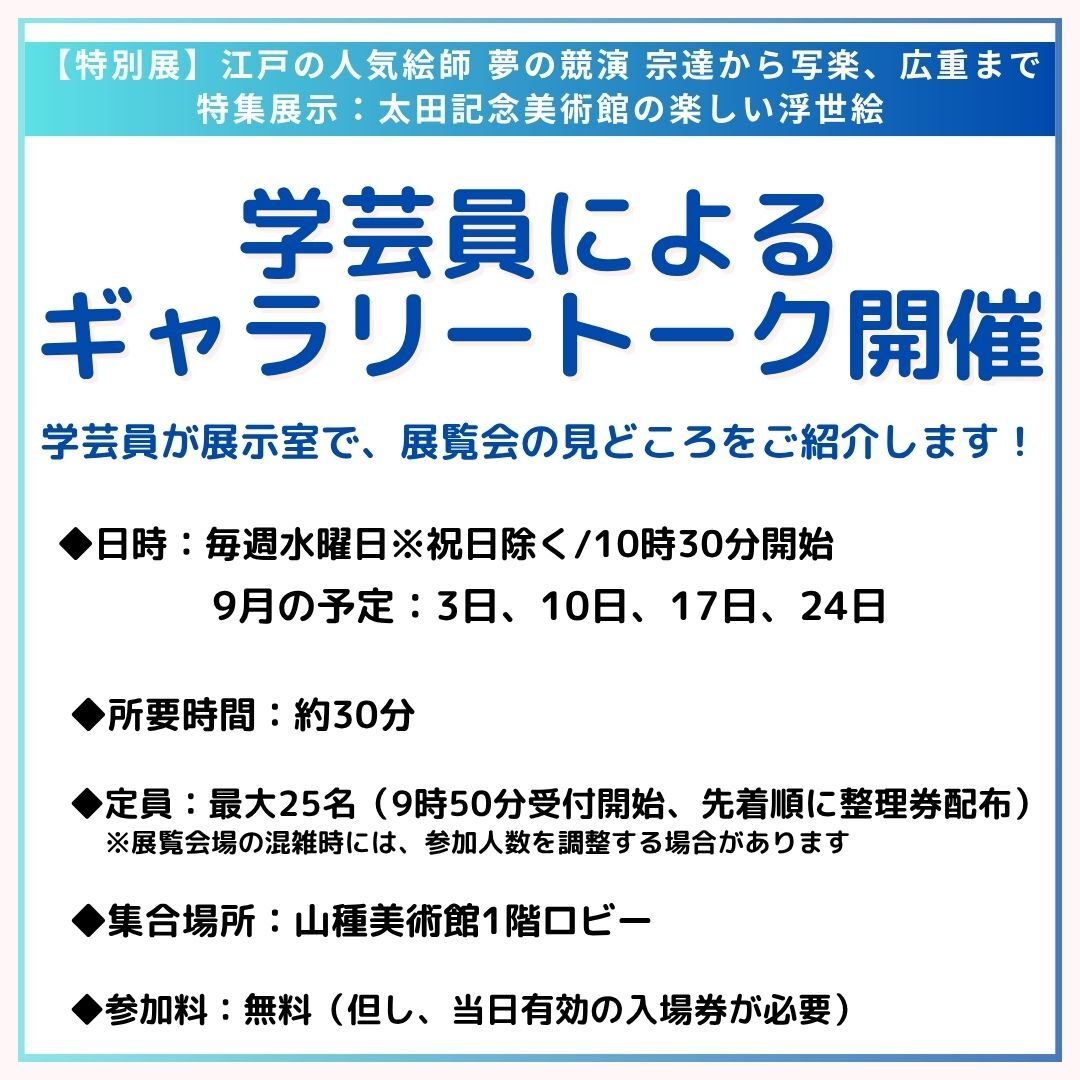 #山種美術館 ギャラリートークのお知らせ📢 \ #江戸の人気絵師展 では、会期中の水曜に見どころを展示室で学芸員がご紹介!(所要時間約30分) 開催日時:水曜日 10:30~ 参加人数:最大25名(受付9:50~先着順) 参加料:無料(要当日券) 詳細: yamatane-museum.jp/2025/07/post-6… pic.x.com/gsIbc49mZN