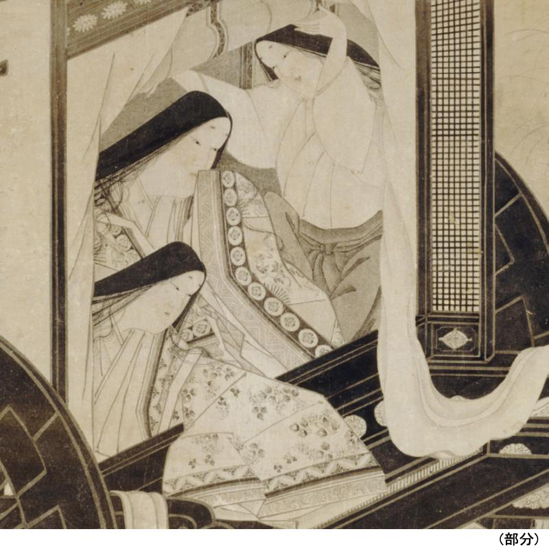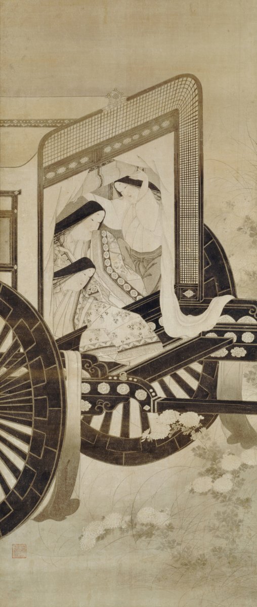 #江戸の人気絵師展 にて展示中!/ #岩佐又兵衛 《官女観菊図》【重要文化財】(#山種美術館 ) 御所車から菊を眺める女性たち🏵️ 『源氏物語』より六条御息所と娘の斎宮を描いたと考えられています。 ほつれる黒髪や着物の模様、ところどころに用いられた金泥の繊細な美しさは圧巻です✨ぜひ会場で! pic.x.com/MSAwdLg06r