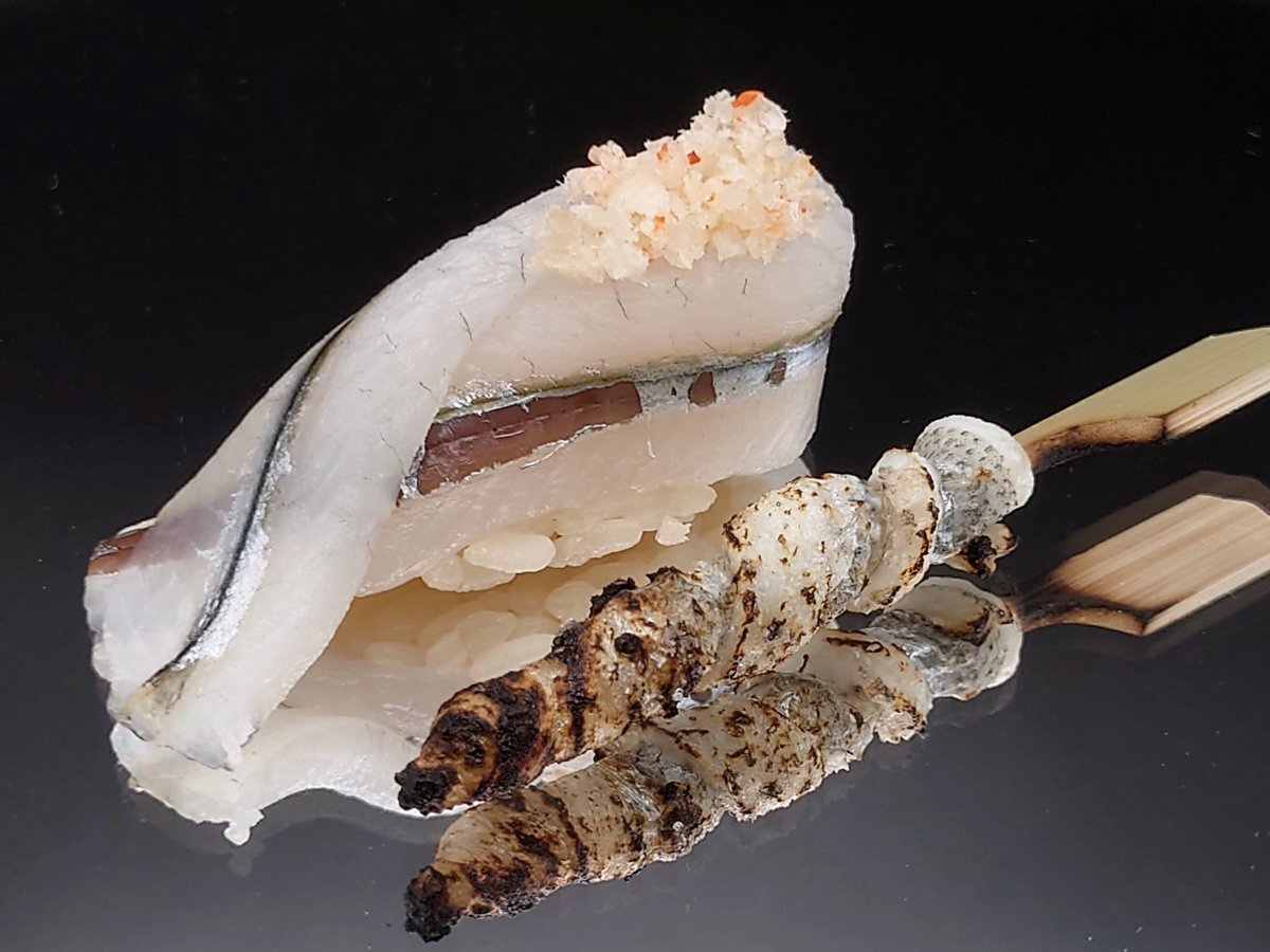 紙塩で旨みをギュッととじこめた『サヨリ』 香ばしい皮も美味しいですよ! #針魚 #サヨリ #寿司處金兵衛 #江戸前寿司 pic.x.com/Yoha5UPPjS