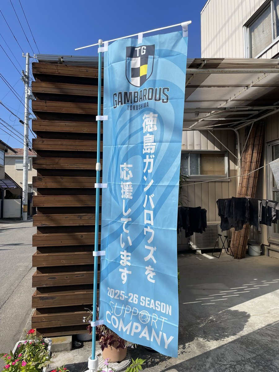 徳島ガンバロウズ応援旗が新調されました! 今シーズンもサポートカンパニーをさせていただきます! よろしくお願いいたします🙇 アウェイ品川戦も がんばれ! ガンバレ! ガンバロウズ! #徳島ガンバロウズ #サポートカンパニー #江淵鏡台店 pic.x.com/aVTwv5D7l3