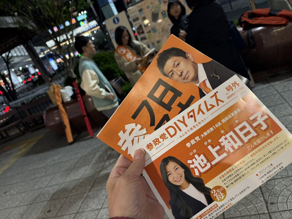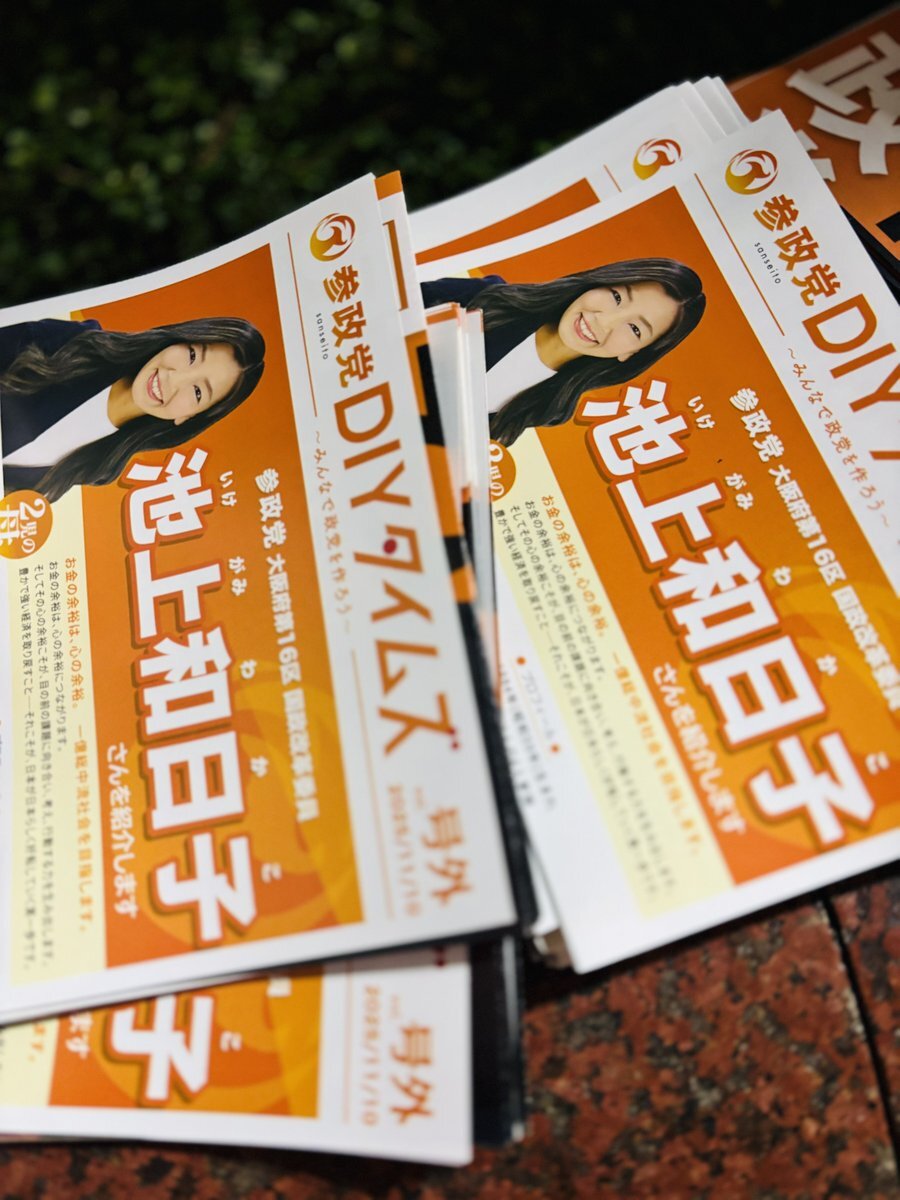 大阪第16支区 国政改革委員の池上和日子(わかこ)さんの新しいDIYタイムズが仕上がり、今夜から配布しています😄 長く配って来た「日本ファースト」のチラシも、残り少なくなって来たので、寂しさ半分ワクワク半分です😊 #参政党 #池上和日子 #池上わかこ #参政党加速中 #参政党は日本の希望 pic.x.com/BgwbvQ7f17