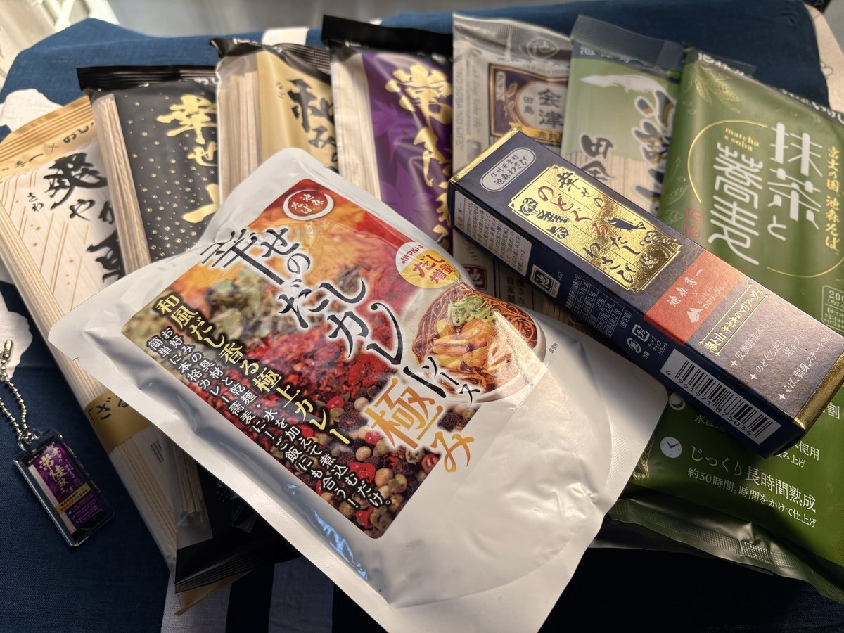 池森そば 届いた- ̗̀📦 ̖́- 沢山ある中から今回は7種類。 「幸せのカレーソース極」と追いわさびも🤭 秋そばと更科が楽しみ♪ チャームは「幸せの陸奥秋そば」でした。ヤッタァ! お仕事用のロルバーンに付けています😊もっとジャラジャラさせたい〜次もあればわさびのが欲しい🤣 #池森そば pic.x.com/bc2aCqywXC