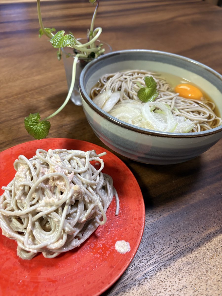 池森そば食べる。美味しかったです かけ「月見そば+玉ねぎスライス+わさびの葉」 盛り「シーチキンL+キューピーマヨ混ぜ+ゆず一味」 アレンジしてみた。どうよ。 #池森そば pic.x.com/9cAQhov4GZ