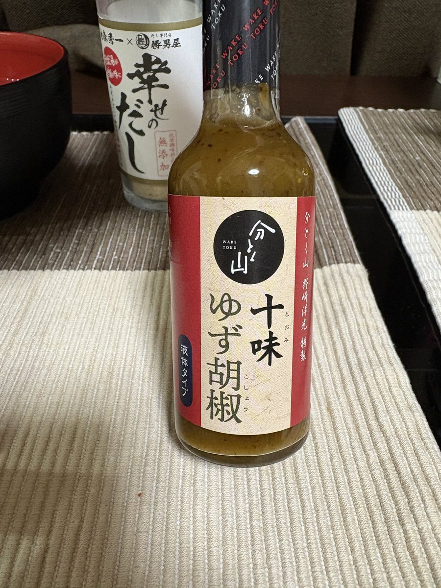 通販購入した時に頂いたこの十味ゆず胡椒、どこで使おうか迷ってて今回の田舎かけ蕎麦に足してみたところ、良い具合の辛味とゆずの爽やかな風味が想像以上に美味しくてびっくりした!! #池森そば pic.x.com/7e1guzqLJ3