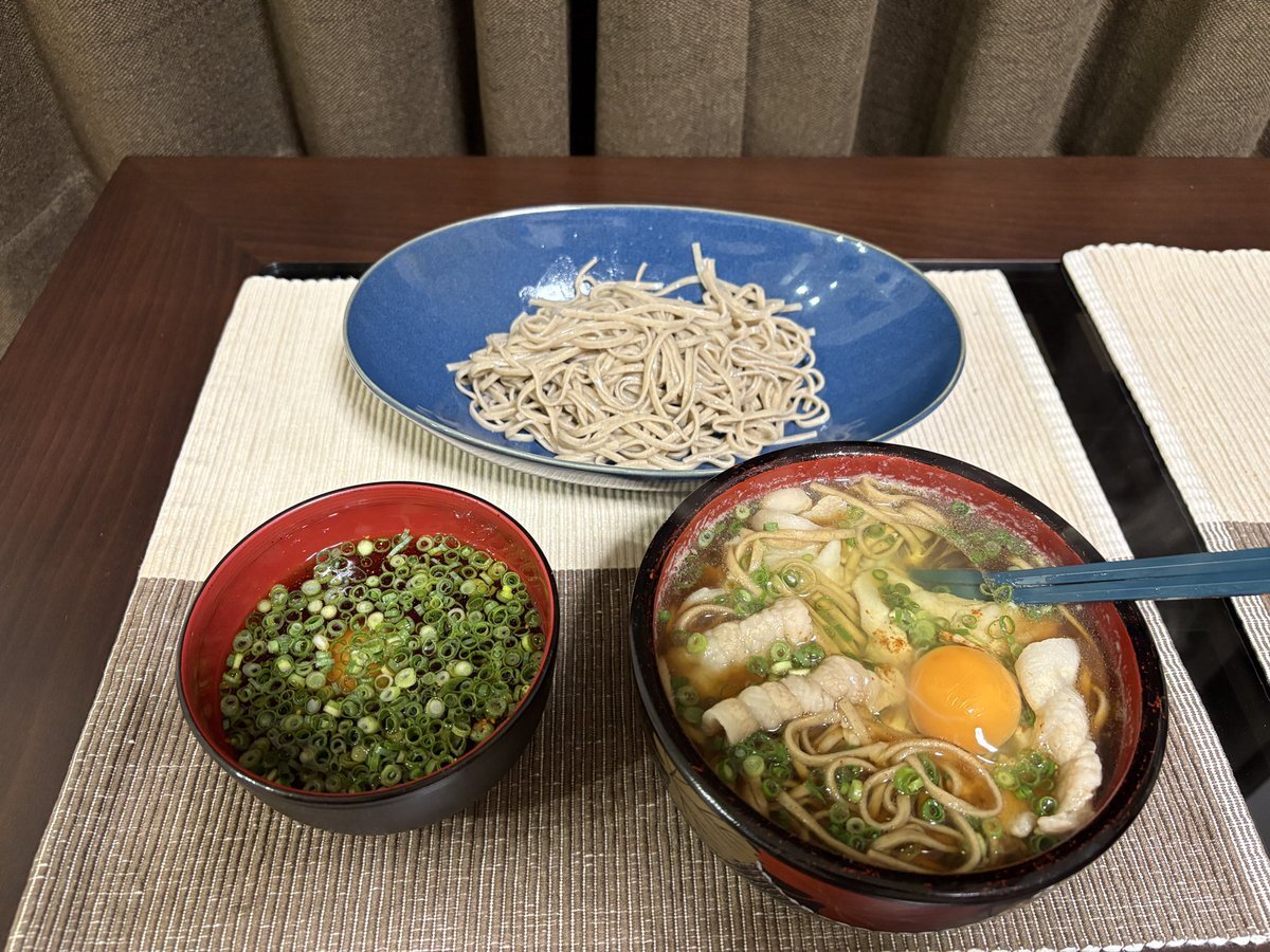 今日の蕎麦。 最近は作る時間を渋って革命つけそばにすることが多い。がとにかく美味い!美味すぎる!! 少しアレンジして、生卵いれたところに沸騰させたつゆを注ぐことでまろやかな味になってさらに食べやすくなったかも! 鰹節、ネギ、えごま油、たまご、蕎麦。 健康食!! #池森そば pic.x.com/socKnzJOkD