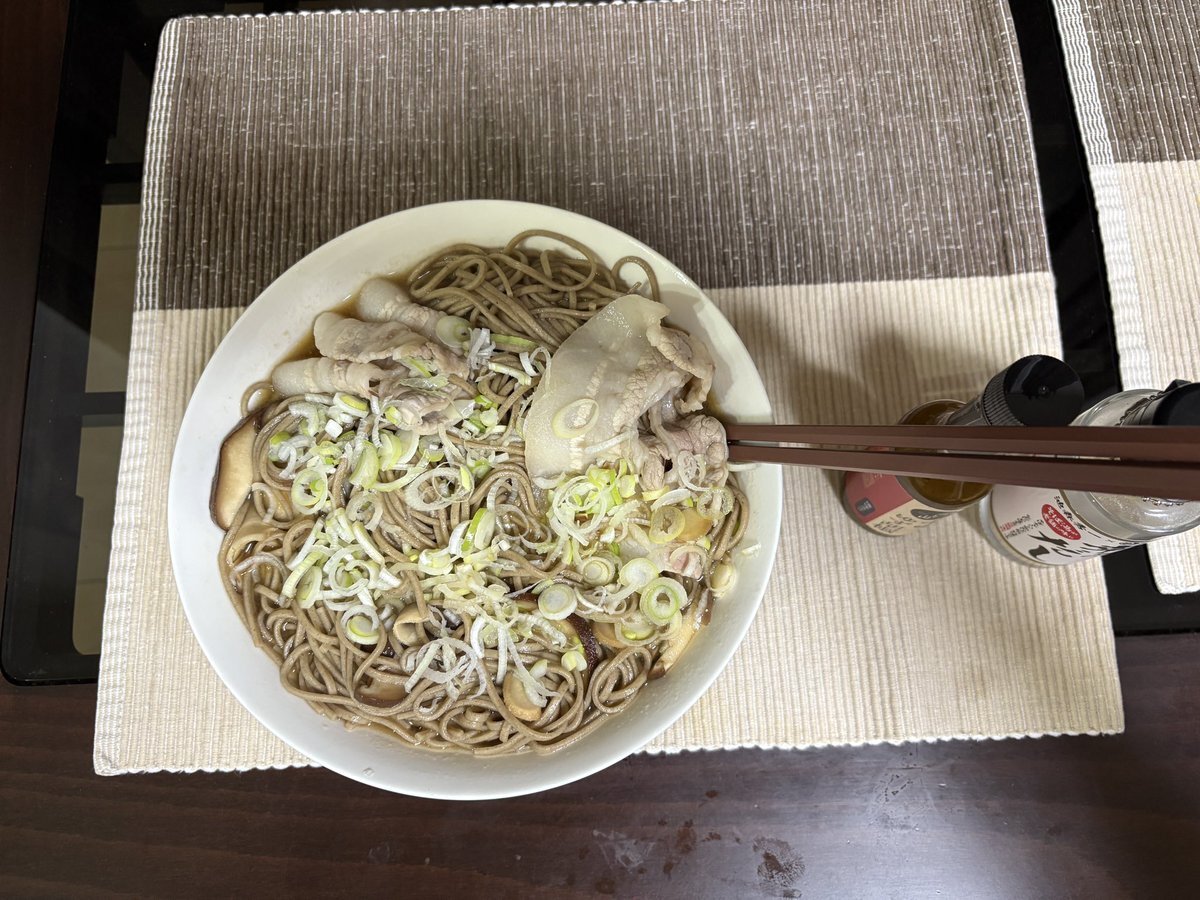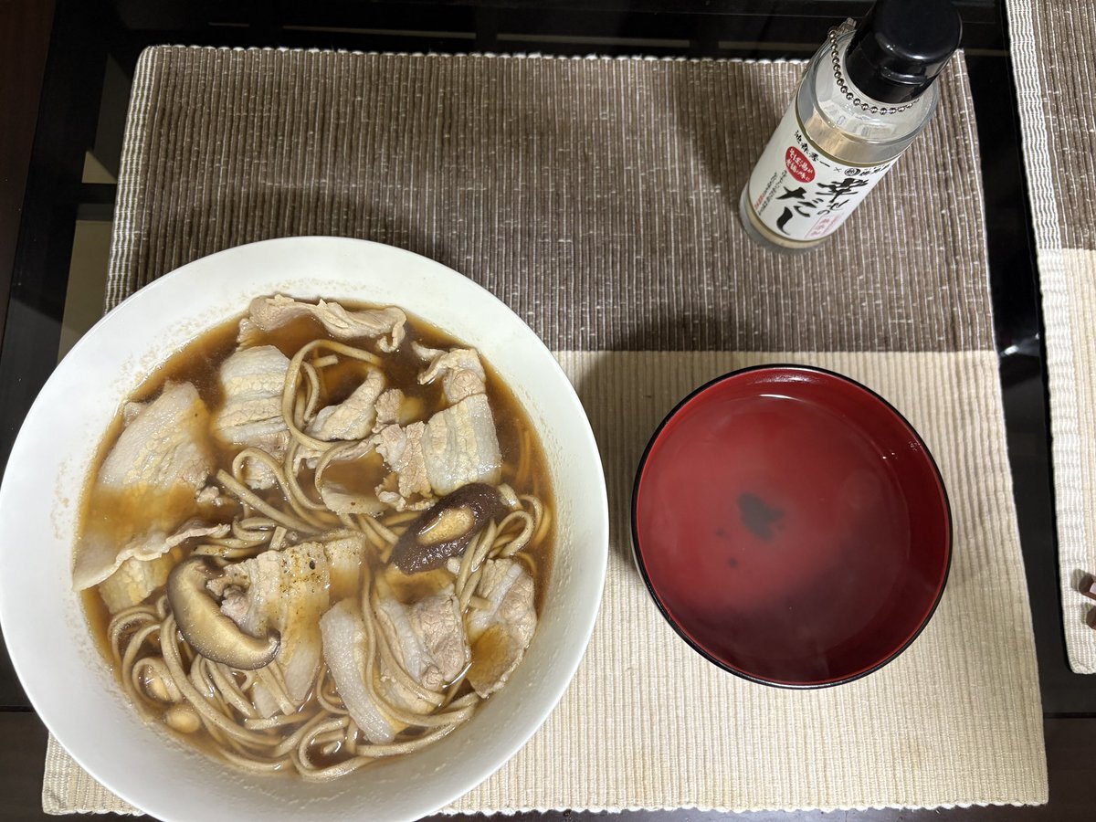 今日は余った豚バラ肉使ってかけ蕎麦!といつものつけ蕎麦! かけ蕎麦で幸せのつゆ初めて使うけど、こんなに美味しい蕎麦のつゆを家で作れるなんて…!! 店の味!! めっちゃくちゃ美味しい。感動的な味。 豚バラの相性、世界一 #池森そば pic.x.com/ElKWRhg8Bd
