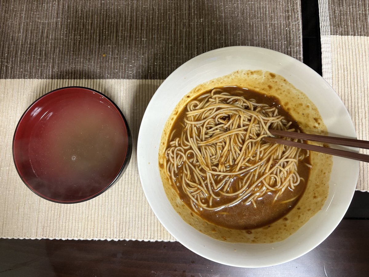 豚キノコ蕎麦にハマっててしばらく続きそう。 しかし流石に2000キロカロリー未満では少なすぎるだろうと、寝る前にレトルトカレー蕎麦食べちゃったぜ!更科うめええ! #池森そば pic.x.com/HUS3hkKbHq