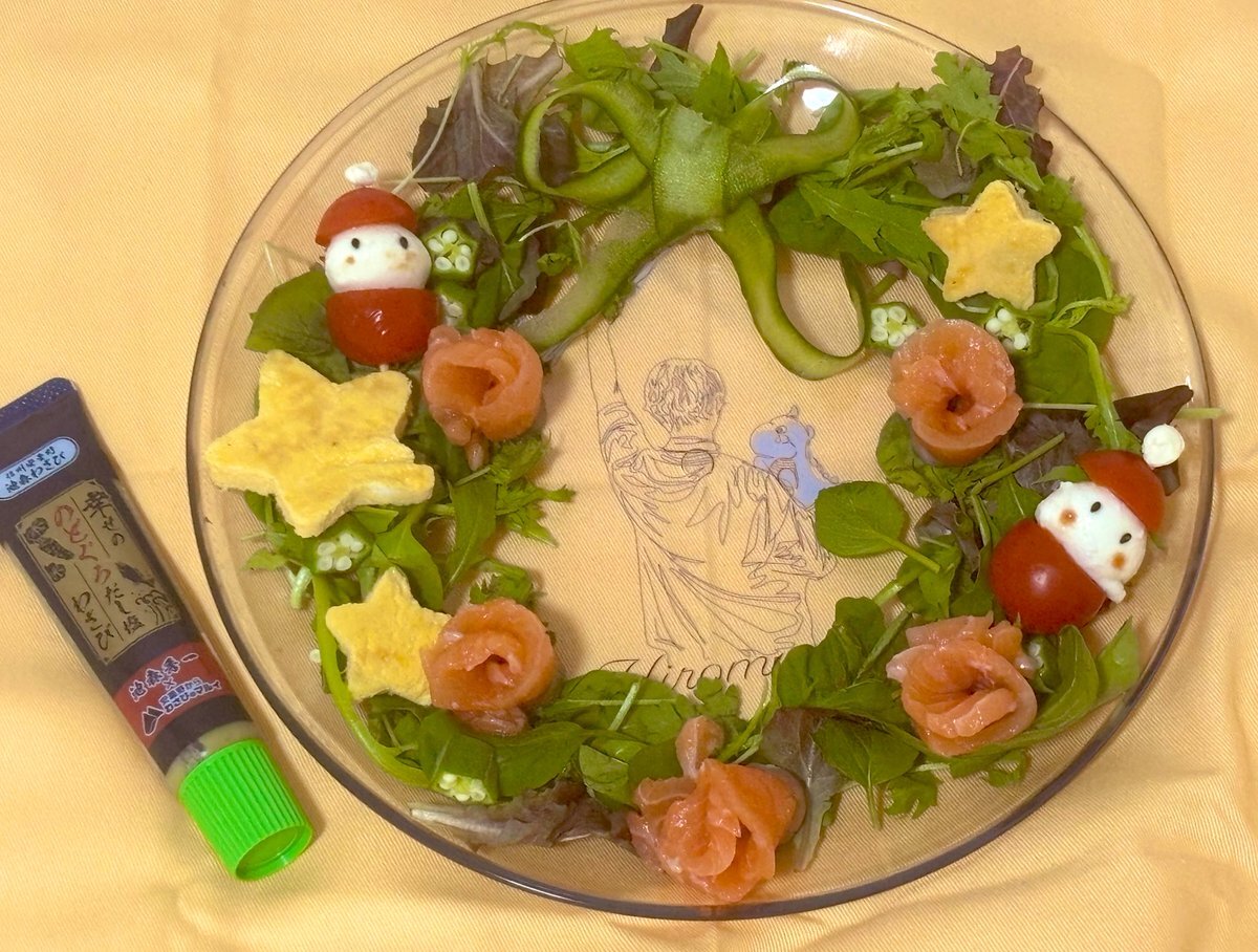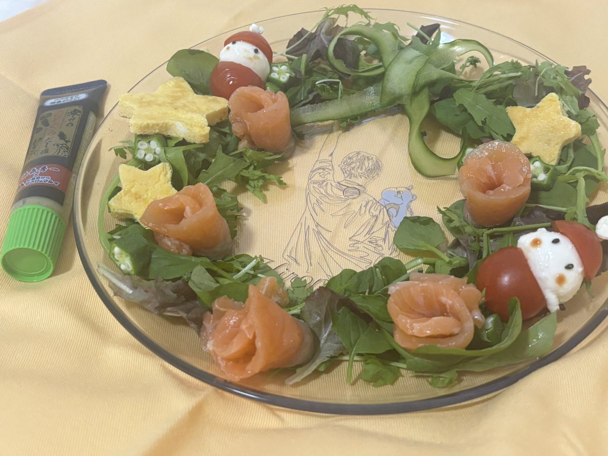 #ヒロムーチョ さんのグッズで #リースサラダ ( ´ ▽ ` )ノ🎄早 ドレッシングは #DEEN #池森秀一 さん #幸せののどぐろだし塩わさび ( -᷄ω-᷅ ).。oஇ(透明なお皿って冬どうやって使うんや??)から思い立ちました🌟 #なみだドラゴン 見えるけど商売道具🎷隠れとる😇💦 pic.x.com/O8lZHnZVHu