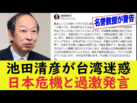 【言及】「台湾も迷惑だと言っている」早稲田大学名誉教授の池田清彦氏、高市氏の発言を批判 news.livedoor.com/article/detail… 池田氏は「中国が怒っているばかりでなく、台湾も迷惑だと言っているよ。何で、関係ない日本が口を出すの」「交易がストップすると、日本はやばいことになるよ」と懸念を示した。
