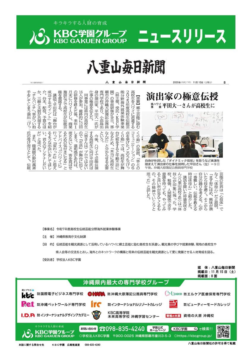 【学校情報】平田大一 氏、演出家の極意伝授。校生ハワイ派遣事業の様子が掲載されました。 詳しくはコチラ 📷 kbcgroup.jp/20098 #学校法人KBC学園 #KBC学園グループ #KBC学園 #沖縄県最大の専門学校グループ #沖縄 #専門学校 #OKINAWA #kbc #大原 #Lcare #irc #Bmode #IDA #Pet #KBC高等学院 pic.x.com/K0WIFmEDvJ